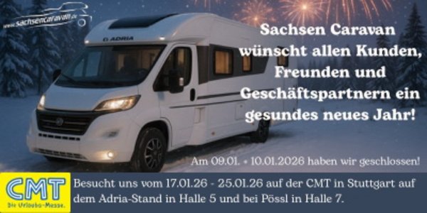 Seit mehr als zwei Jahrzehnten steht der Name Sachsen Caravan für Qualität und Expertise rund um Wohnmobile und Wohnwagen. Auf unserem weitläufigen Verkaufsgelände im mittelsächsischen Döbeln erwartet Sie ein breites Angebot an ausgewählten Markenfahrzeugen. Wir sind Vertragshändler der Marken Adria Kastenwagen und Reisemobile, Clever, Hobby- Reisemobile, Kabe-Reisemobile, Pössl, Rapido, Roadcar, Campster und Vanster. Ob neu, gebraucht oder zur Miete für den nächsten Kurzurlaub. Wir finden für jeden die richtige Lösung! Unsere Werkstatt-Profis unterstützen Sie bei technischen Lösungen aller Art und beraten Sie gern in Sachen Umbau und Tuning.
